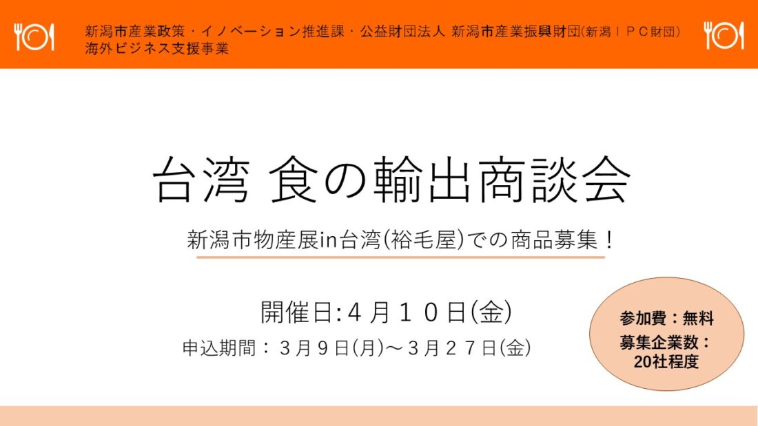 【2026年04月10日(金)開催】台湾 食の輸出商談会(新潟市物産展)