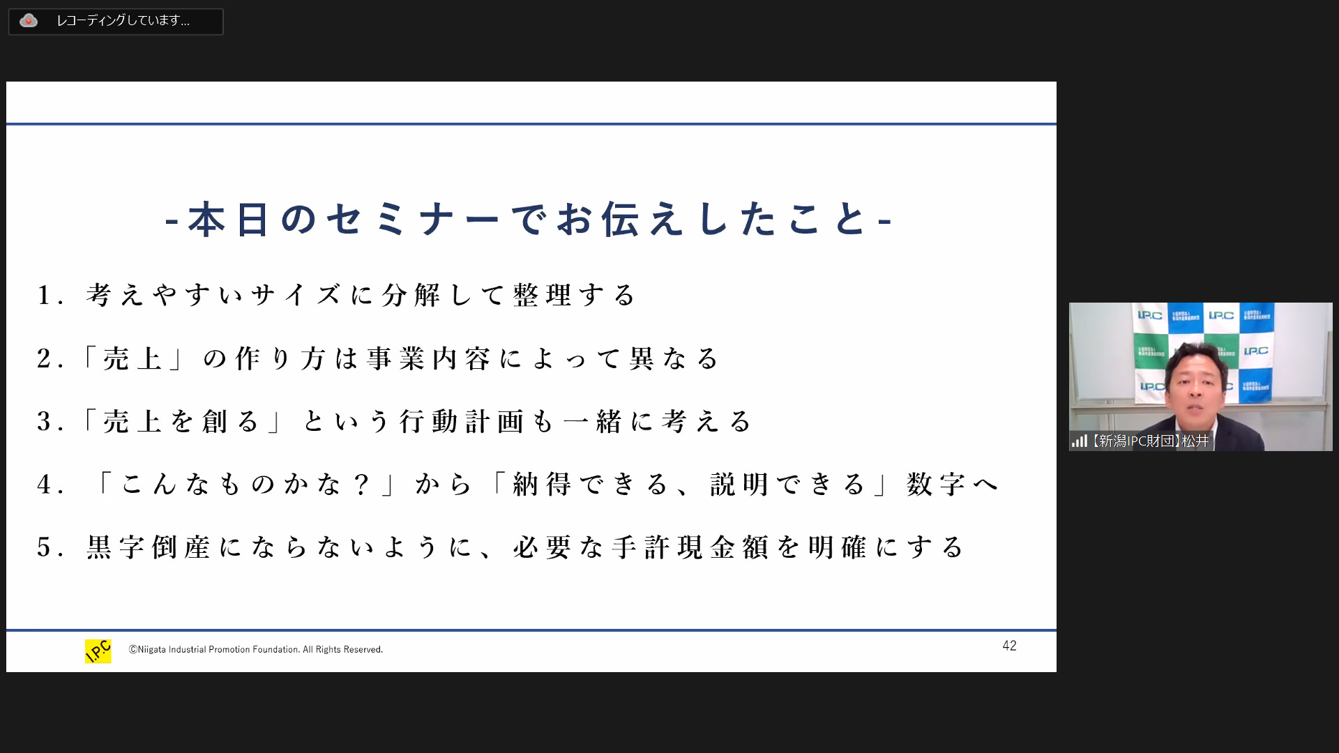 損益計画づくりにおいて必要となる数字の整理の仕方や集客方法など、松井PMの具体的なお話しから、今後の戦略・行動のヒントを得ることができたのではないでしょうか。