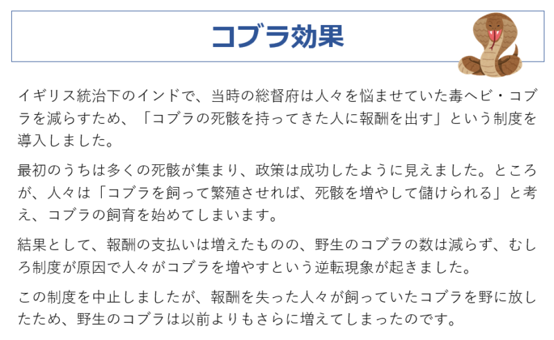皆さんの職場では「コブラ効果」が起きていないでしょうか。