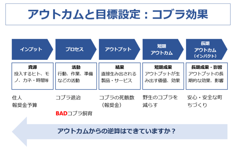 もちろん、インプットやプロセスは、バッグキャスティング、アウトカムから逆算して設定します。