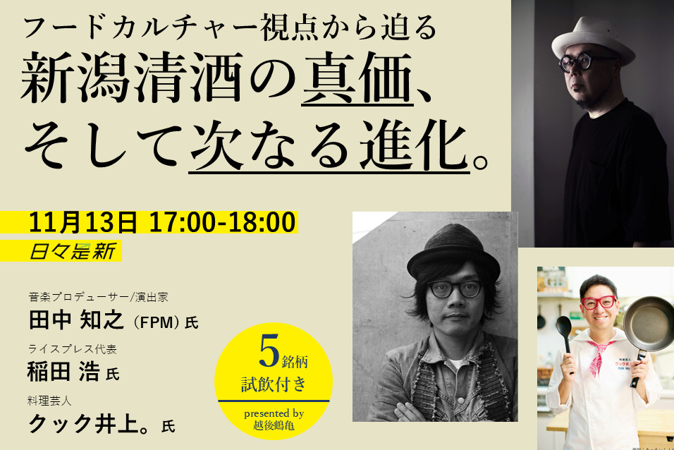 タイトル | 「フードカルチャー視点から迫る「新潟清酒の真価、そして次なる進化」 続・Niigata Sake Innovation」 |