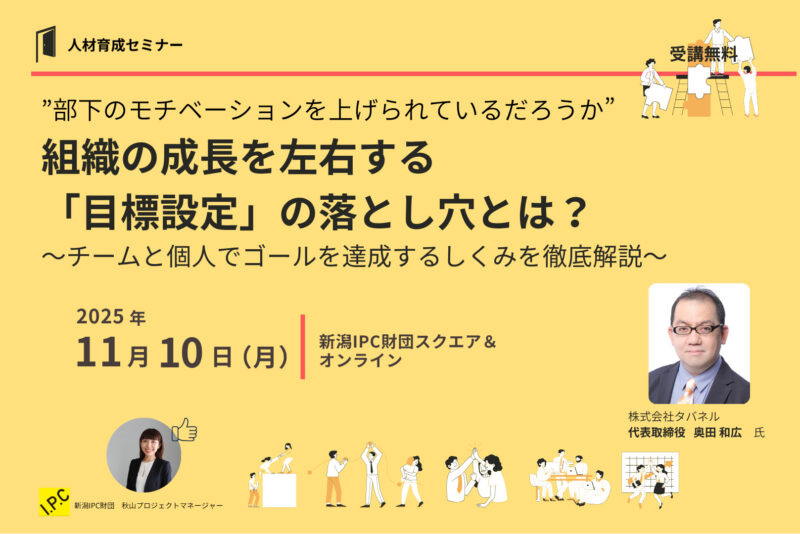 開催日時 2025年11月20日(木) 会場 IPCビジネススクエア&オンライン(ハイブリット開催) 受講料 無料 - 人材育成